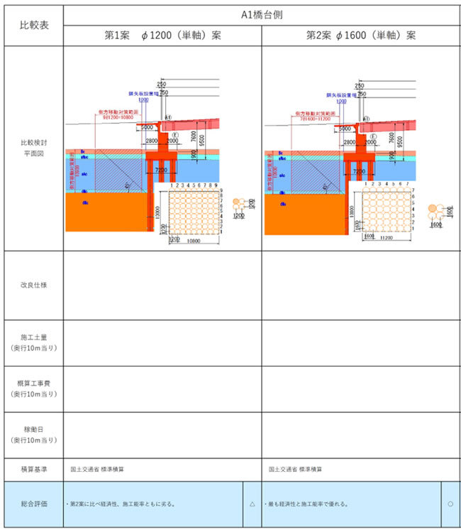 予備設計(比較検討)では,各案の現地での適用性・施工性・経済性などの様々な観点で検討を行ったうえで,当現場に最適な工法としてEPS工法を提案いたしました。